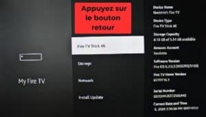 Appuyez 7 fois sur le bouton « Fire TV Stick 4K« .